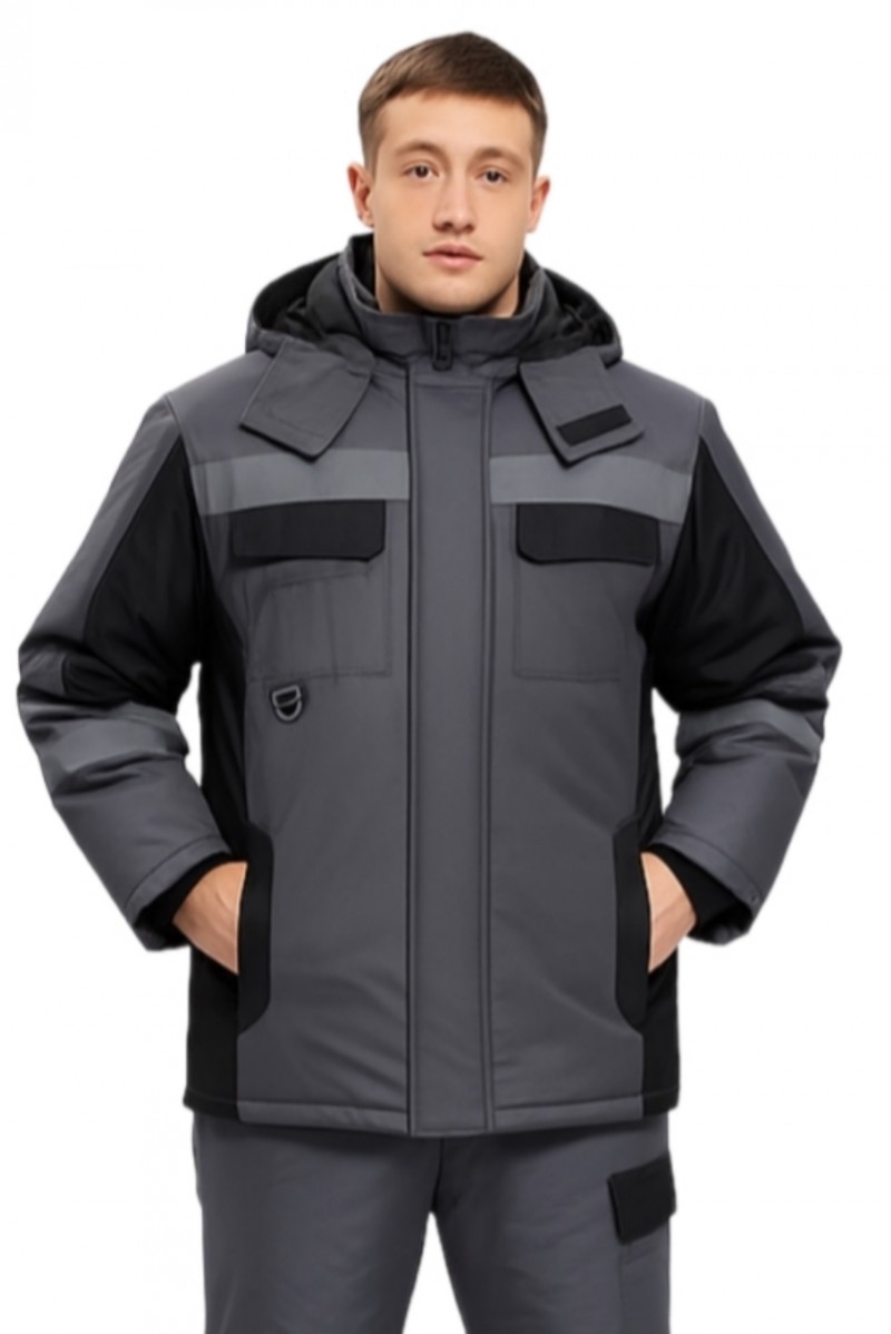 ➠ Куртка: утеплённая подкладка, застёжка молния, ветрозащитный клапан, накладные и прорезные многофункциональные карманы. Воротник-стойка на флисе, фигурные светоотражающие полосы по кокетке.